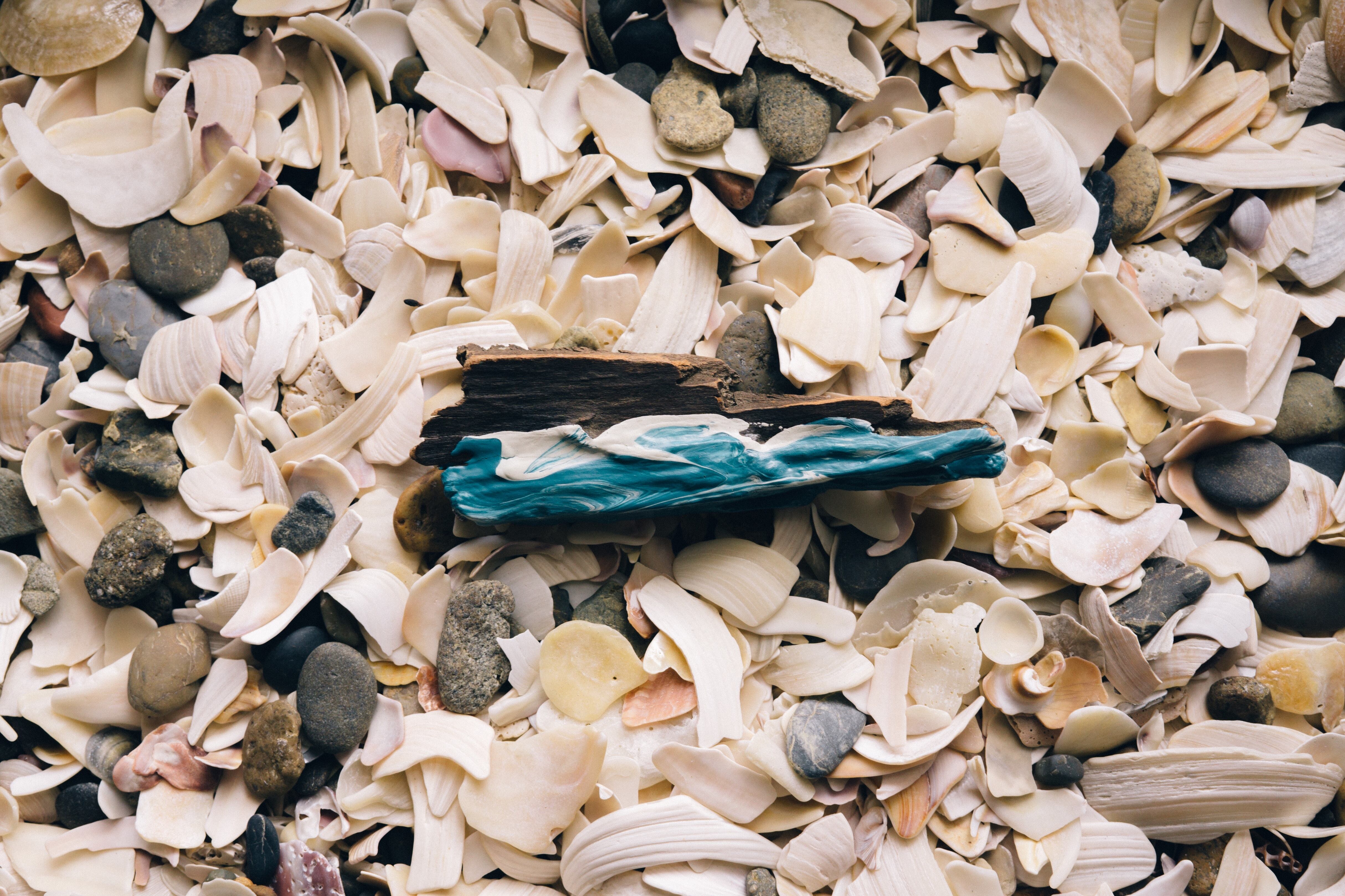 流木に海をイメージしたペイントをしてマグネットを作りました。