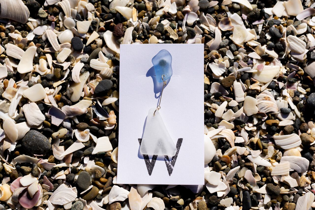 浜辺に流れ着いたシーグラスをイヤリングにしました。