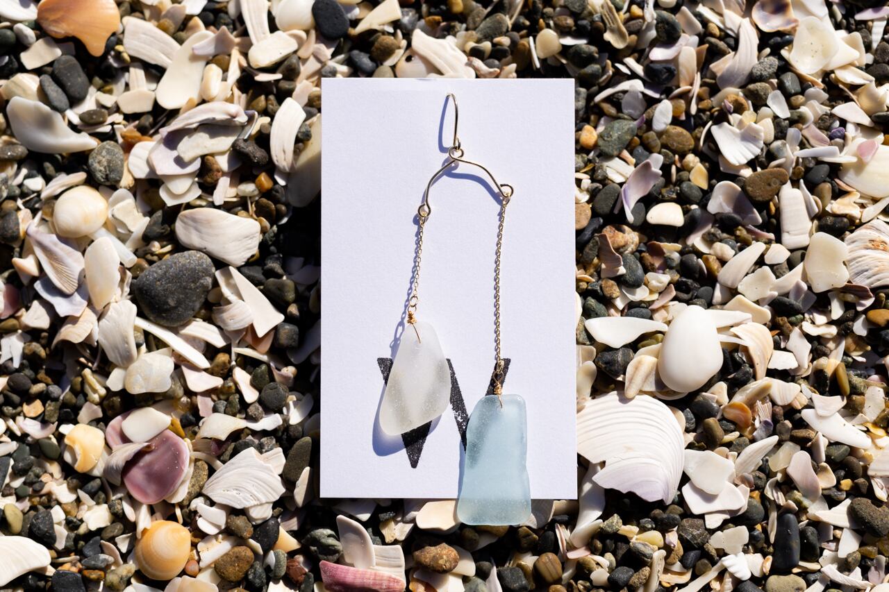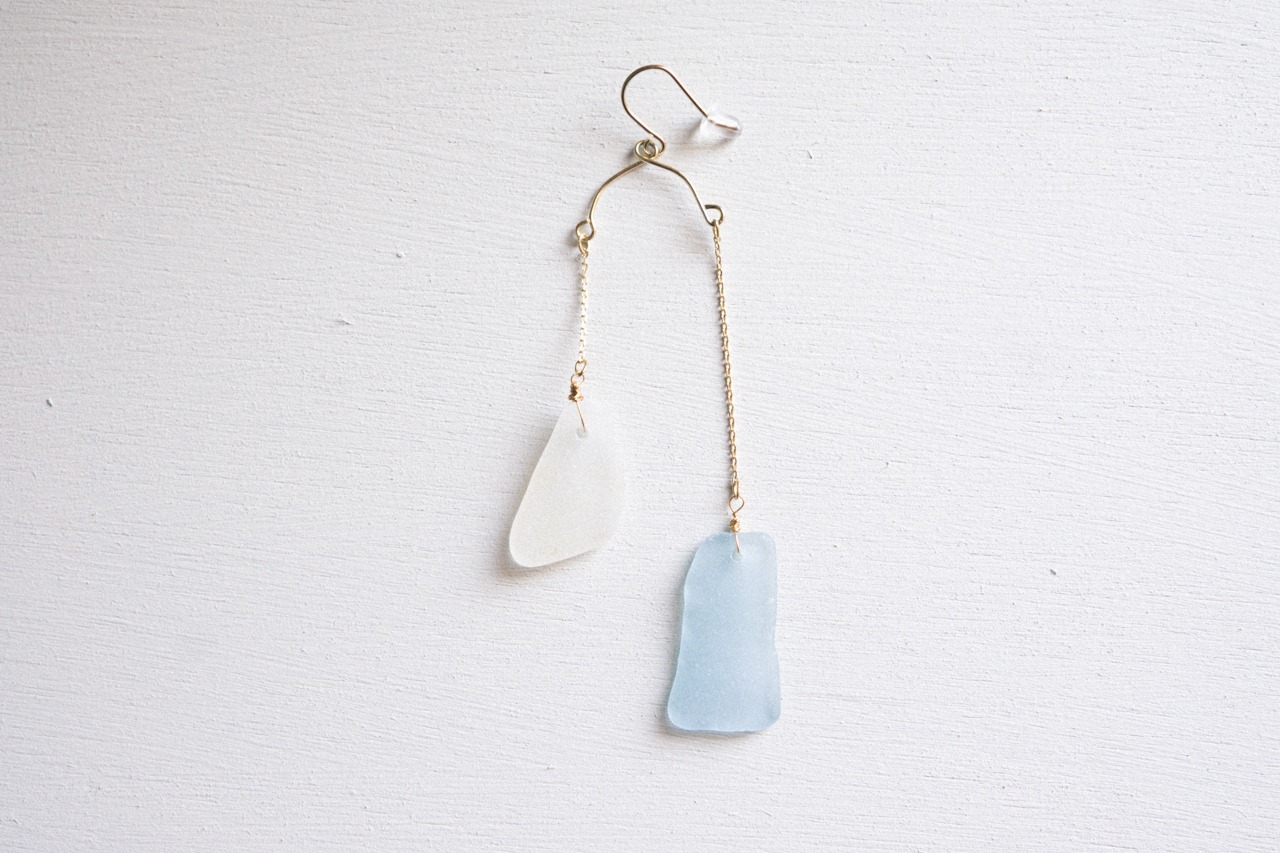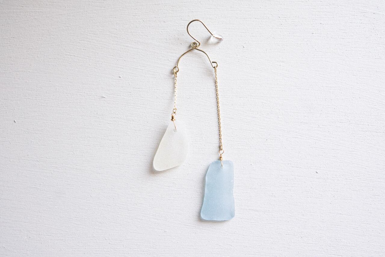 浜辺に流れ着いたシーグラスをピアスにしました。