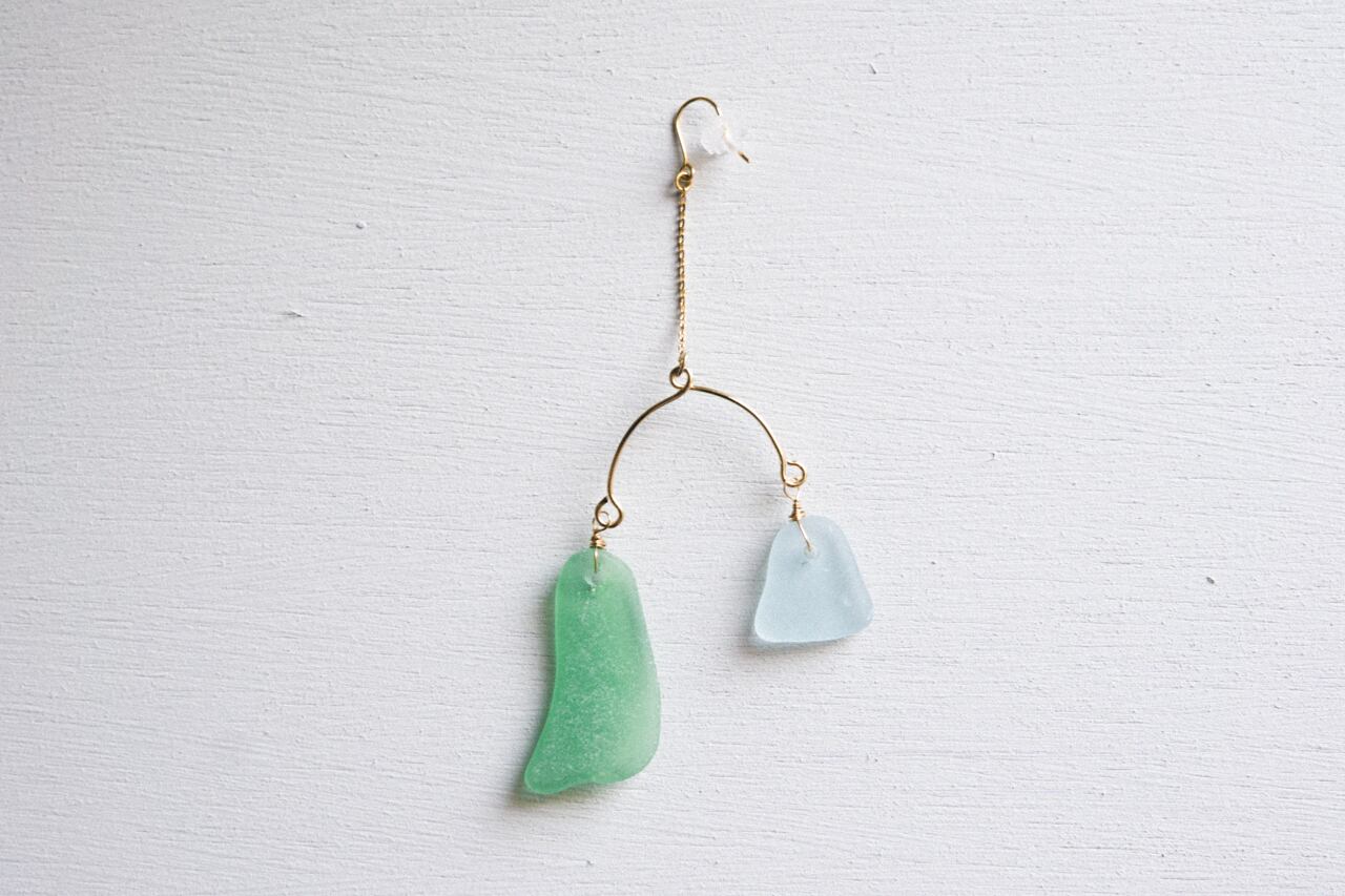 浜辺に流れ着いたシーグラスをピアスにしました。