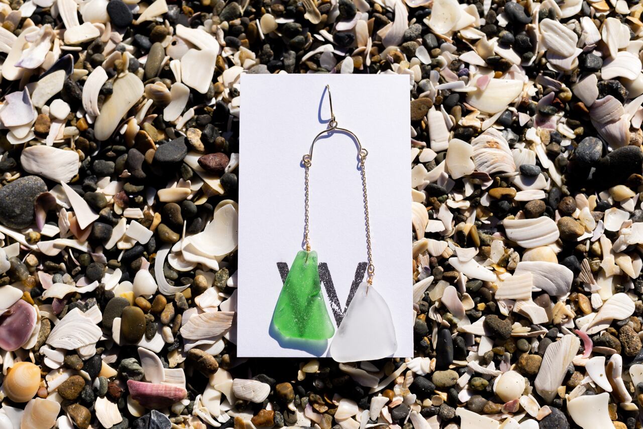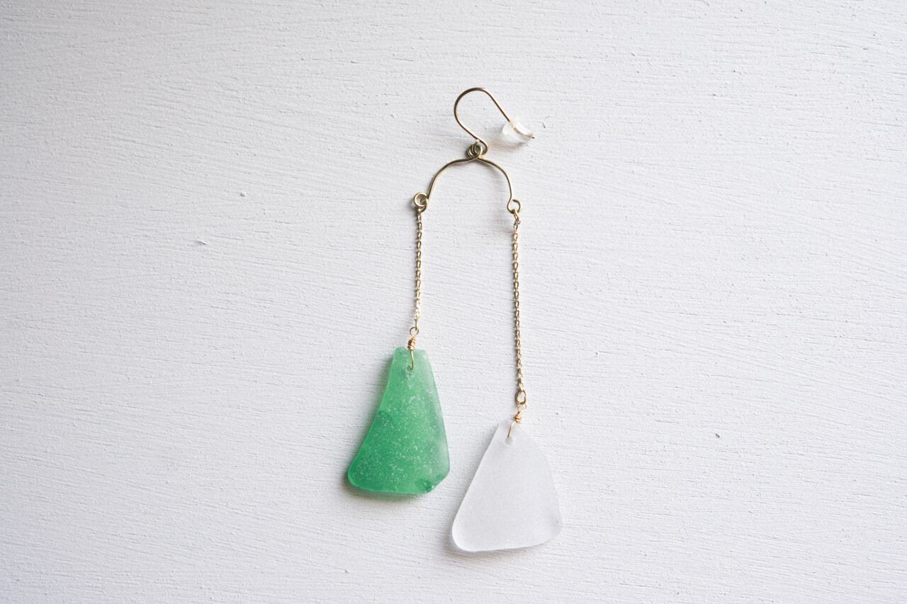 浜辺に流れ着いたシーグラスをピアスにしました。