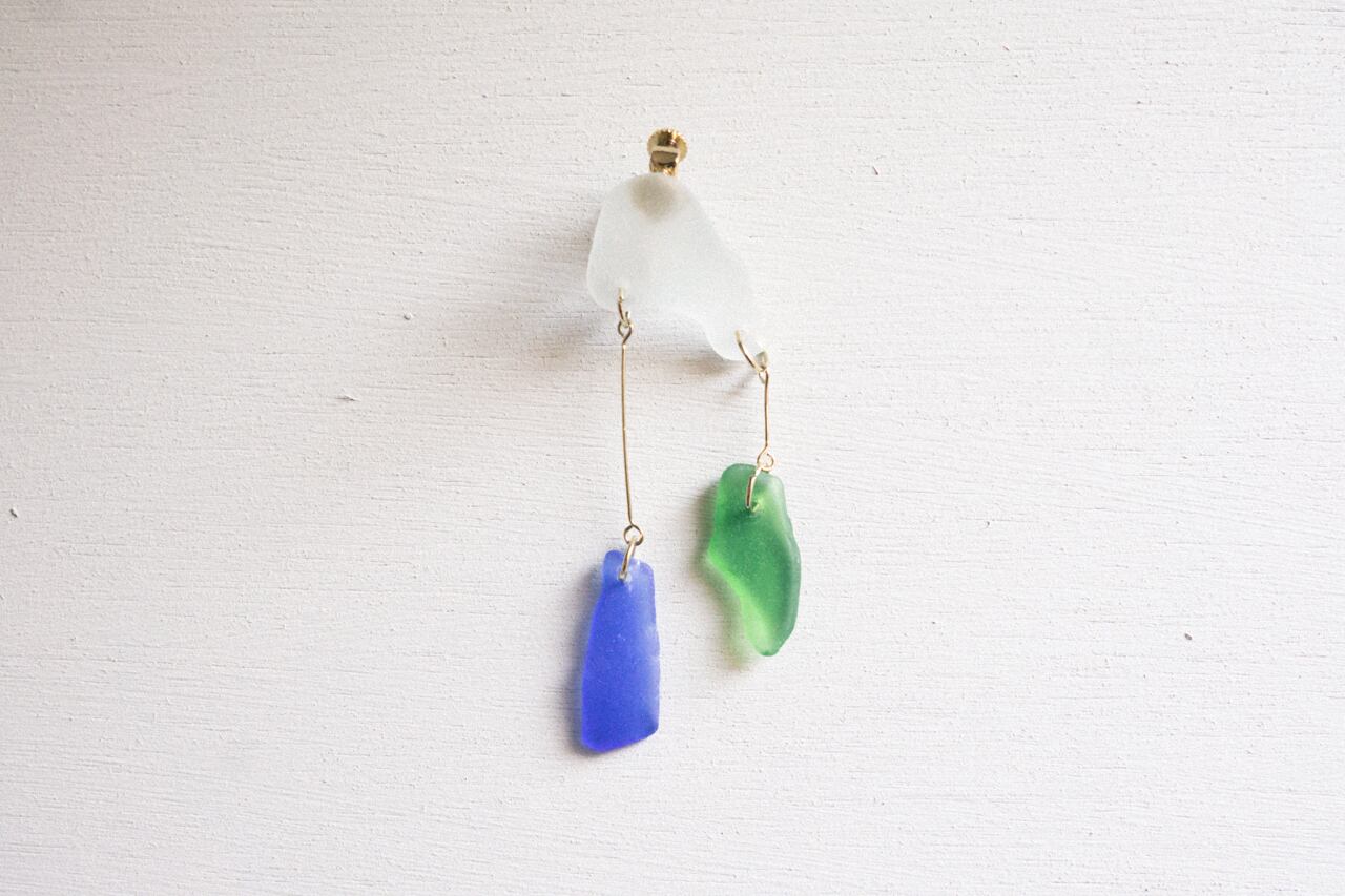 浜辺に流れ着いたシーグラスをイヤリングにしました。