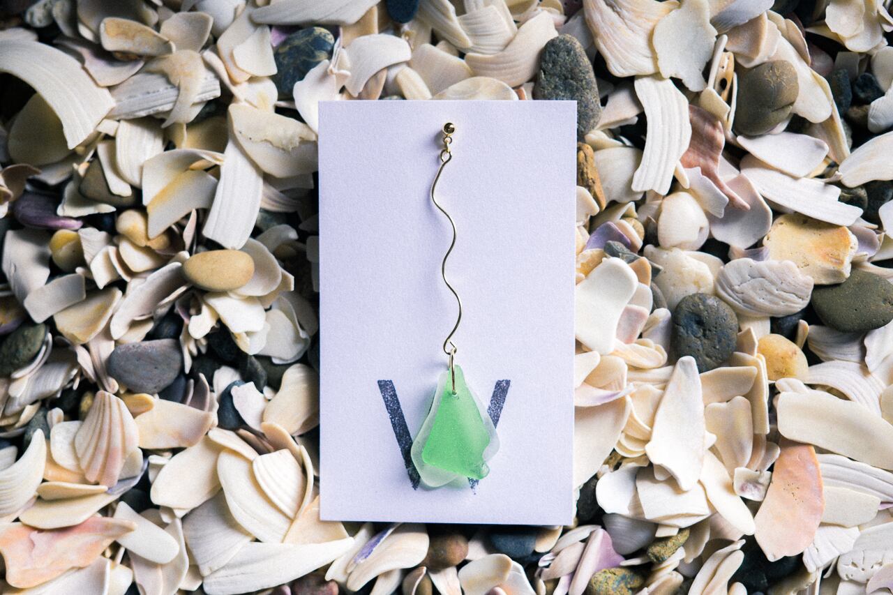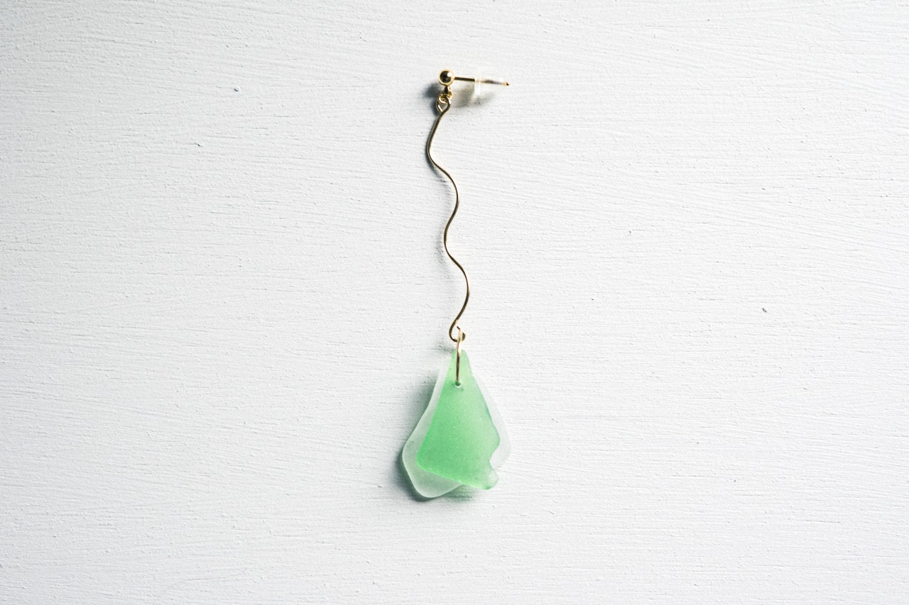 浜辺に流れ着いたシーグラスをピアスにしました。