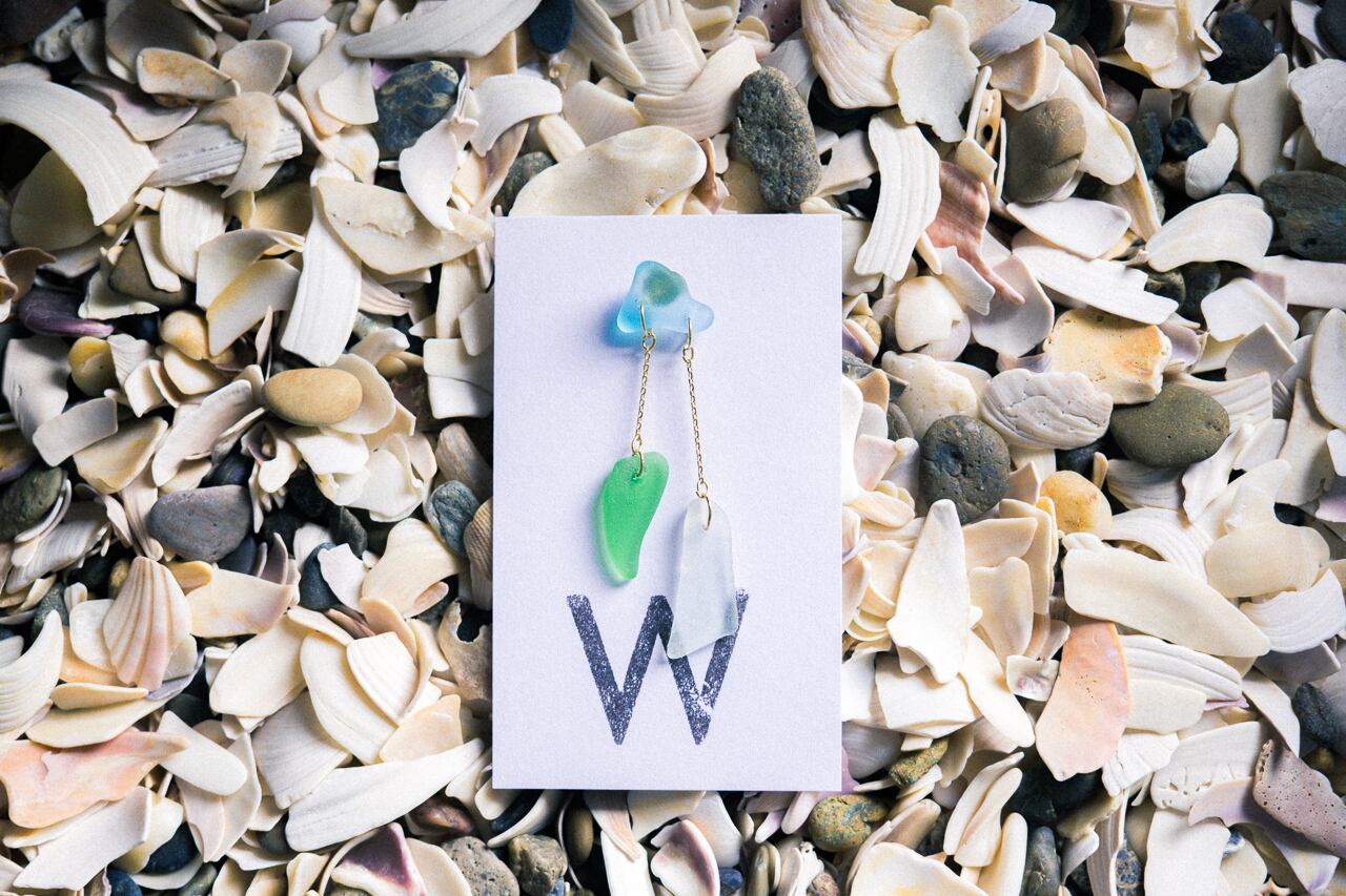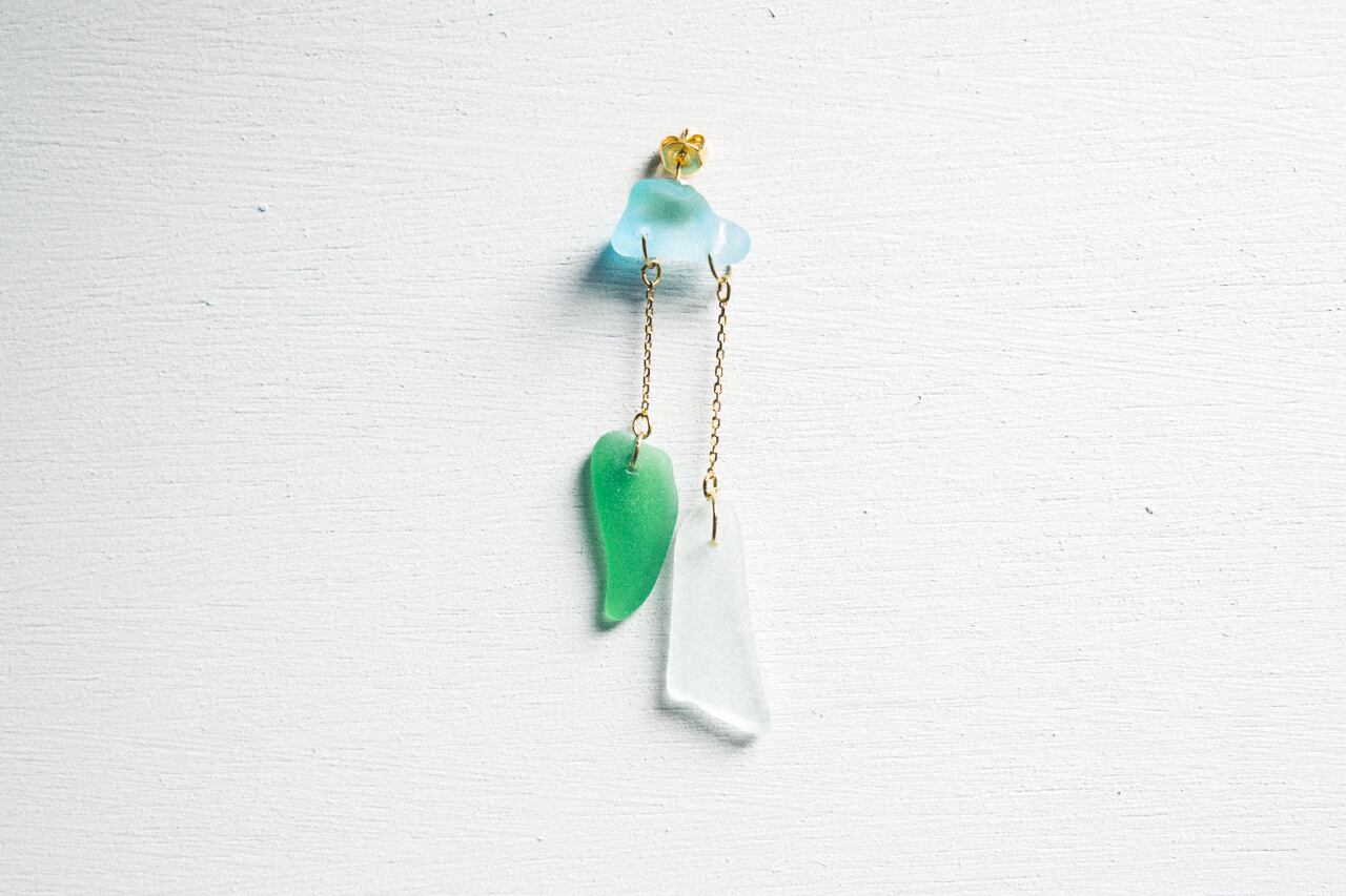 浜辺に流れ着いたシーグラスをピアスにしました。