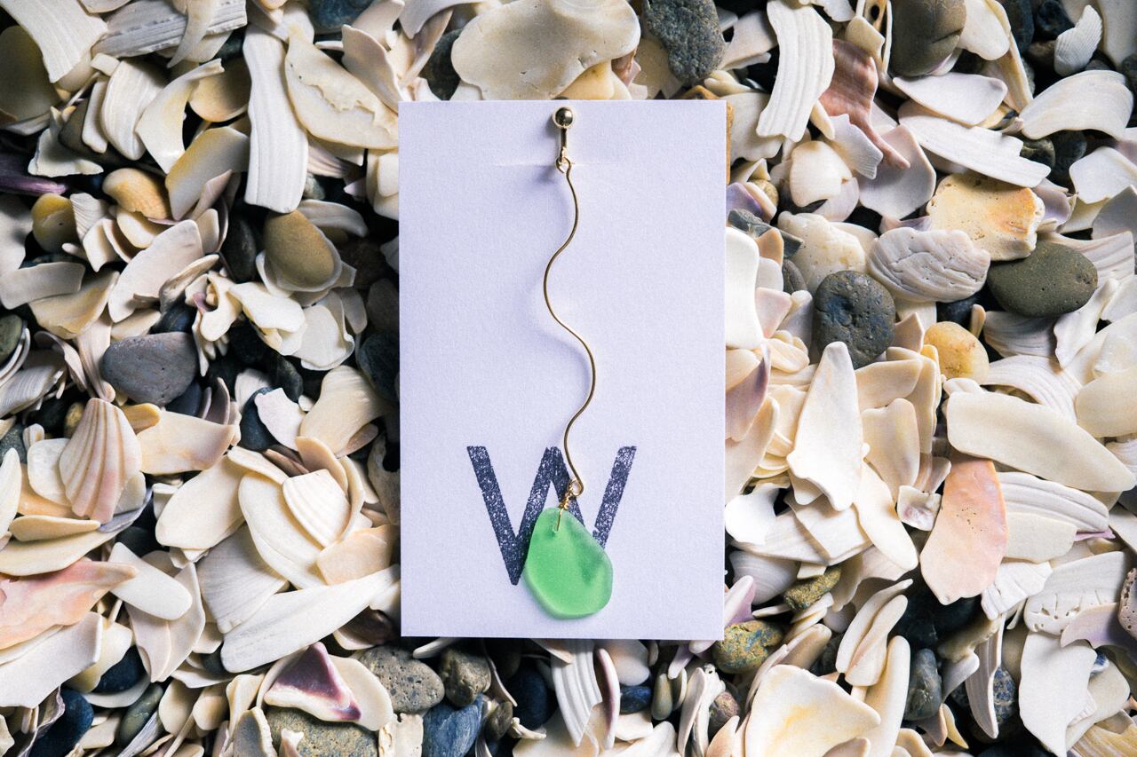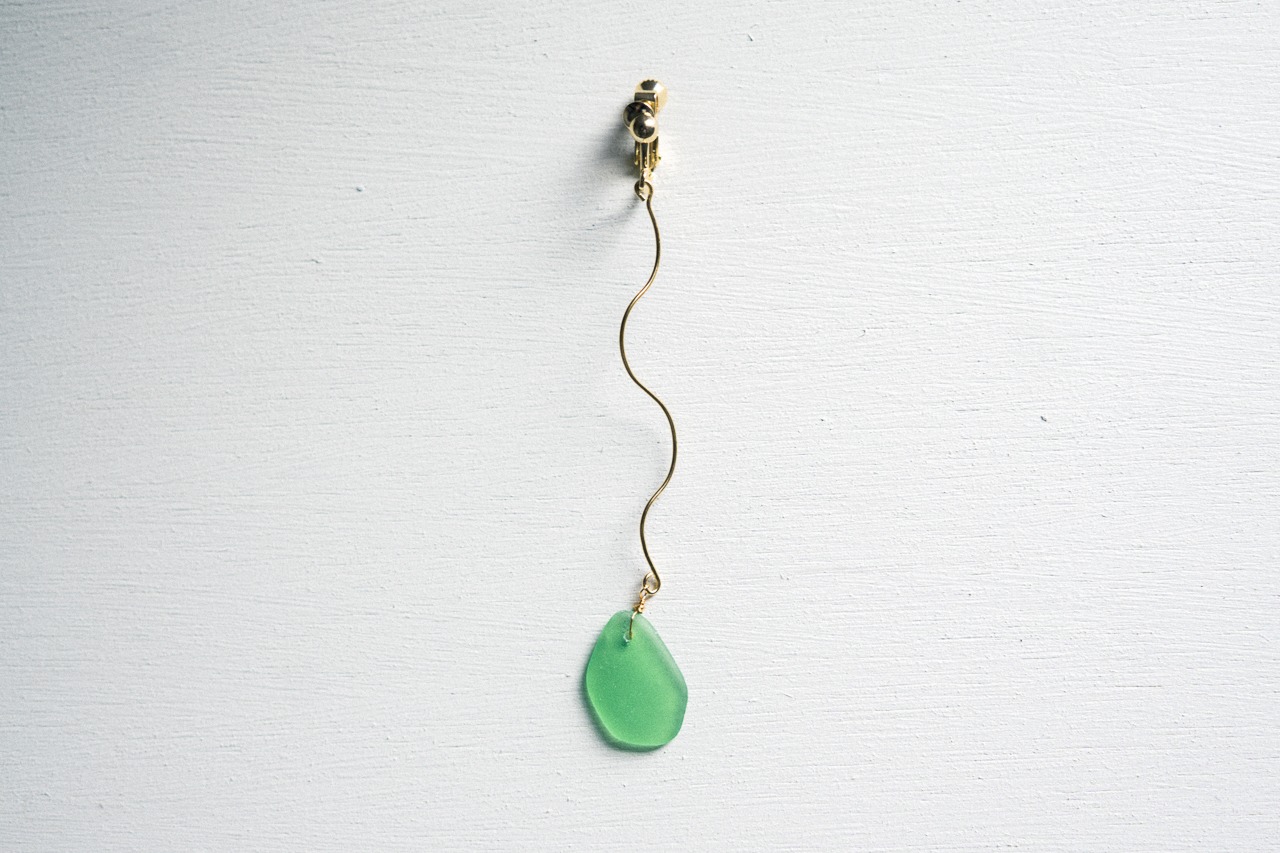 浜辺に流れ着いたシーグラスをイヤリングにしました。
