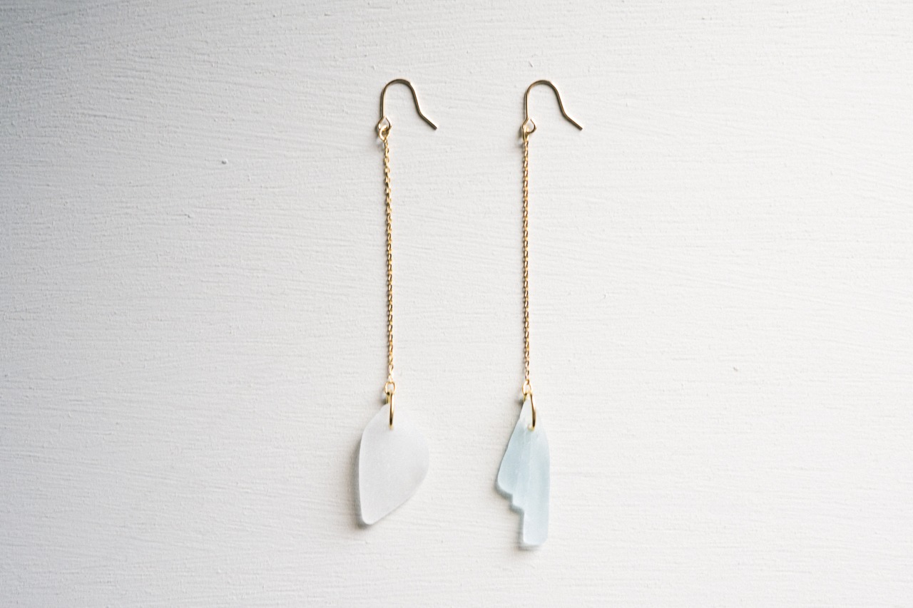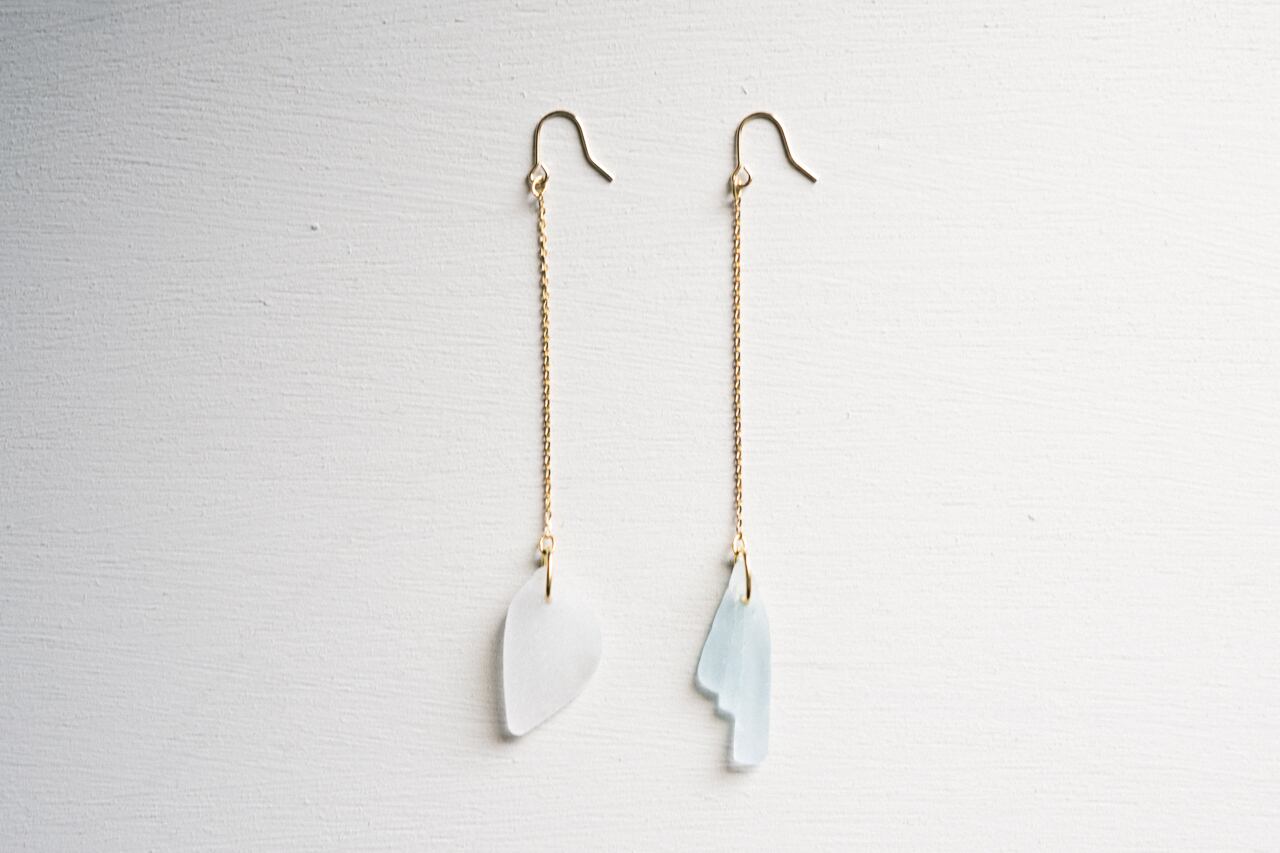 浜辺に流れ着いたシーグラスをピアスにしました。