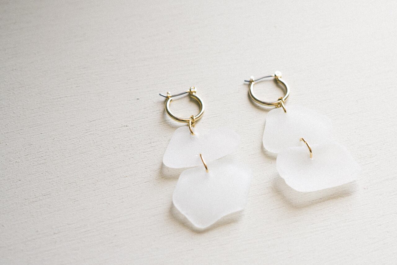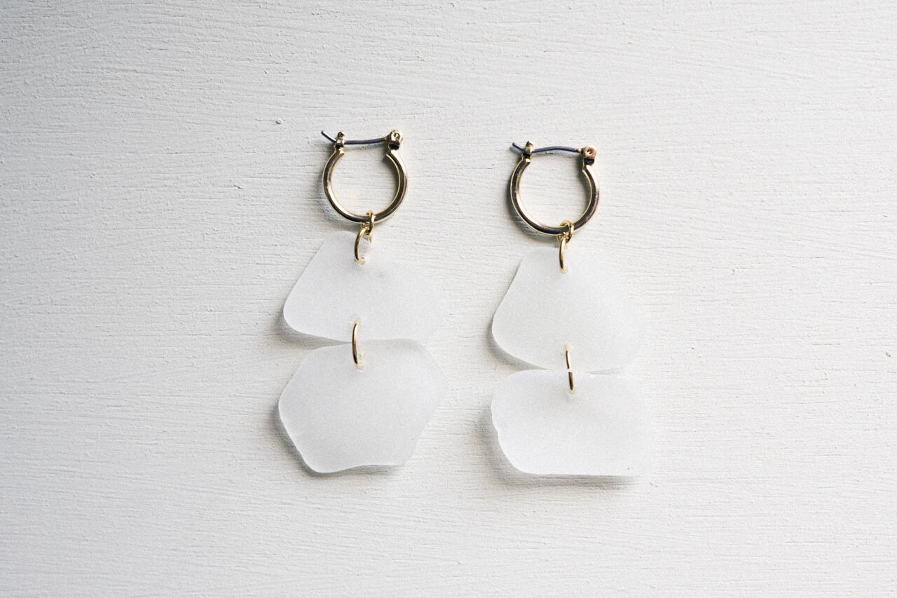 浜辺に流れ着いたシーグラスをピアスにしました。